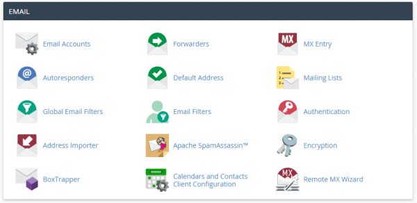 登录到cPanel,然后单击电子邮件帐户,如下面的屏幕截图所示:−