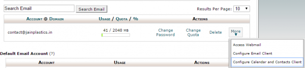 现在我们可以看到以下窗口,其中显示了我们官方的域名特定电子邮件 ID contact@jainplastics.in。现在单击配置电子邮件客户端,如下面的屏幕截图所示:−