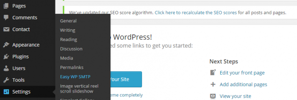 现在到了关键部分,单击**设置**,然后单击**Easy WP SMTP**,如上图所示。