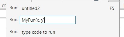 步骤3 - 现在,从MATLAB编辑器菜单中,点击`编辑器`选项卡,然后选择“运行”,它将显示可用于运行该函数的命令列表。