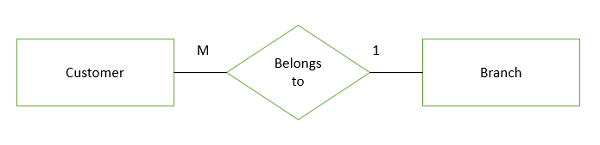 许多客户属于一个支行,而一个支行属于许多客户。因此,客户和支行之间的关系是多对一关系。