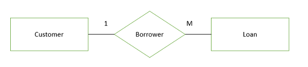 一个客户可以借多笔贷款,同样多笔贷款可以由一个客户借出,因此客户和贷款之间的关系是一对多关系。