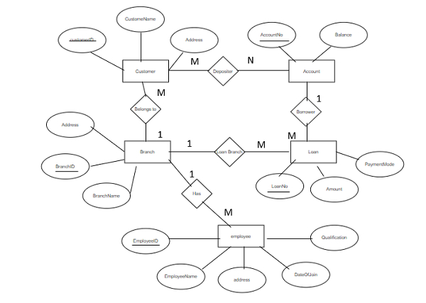 在DBMS中构建银行系统的ER图?