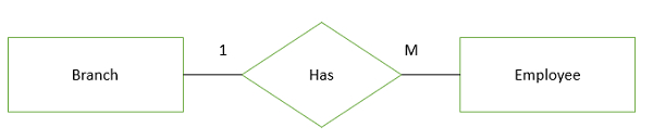 一个支行有多名员工,同样多名员工在一个支行工作。