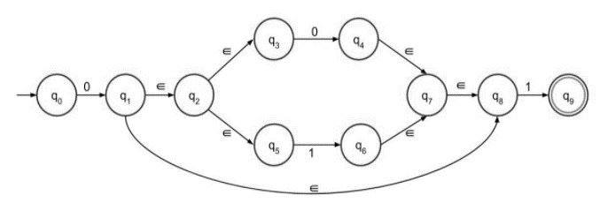 步骤 3 - (0+1) 的带有 epsilon 的 NFA 如下: