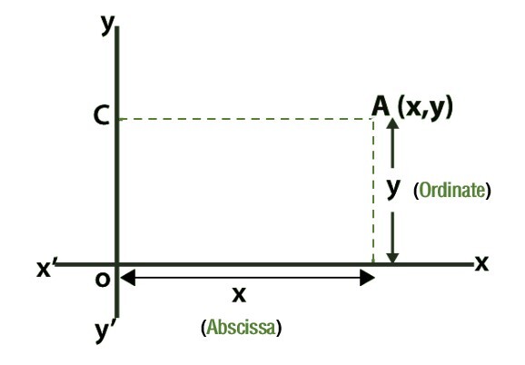 为了在平面上分配点,我们需要坐标。x坐标表示点到y轴的距离,而y坐标表示点到x轴的距离。