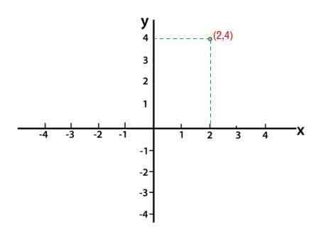 例如——如果我们要在坐标平面上分配点(2,4),那么我们将沿正x方向移动2个单位,然后从那里沿正y方向移动4个单位,因此我们到达了我们想要的位置,即(2,4)。