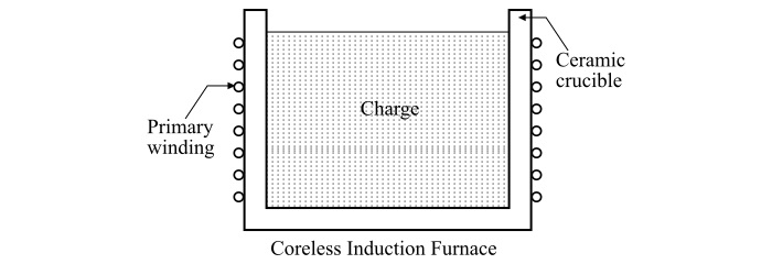 下图显示了无芯式感应炉的示意图。
