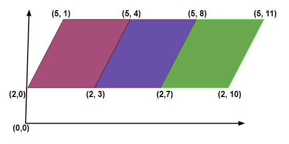 解释 - 给定 (x, y) 点,并使用这些点,我们可以形成 3 个平行四边形,如图所示。
