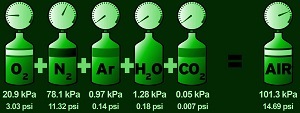 特定气体在其他气体混合物中施加的压力称为该特定气体的分压。例如,如果一个容器包含3种气体的混合物——氧气、氮气和CO₂——则其分压等于氧气对容器壁施加的压力,其分压等于氮气和二氧化碳的分压。混合物中O₂、N₂和CO₂的分压之和对容器壁施加总压力。