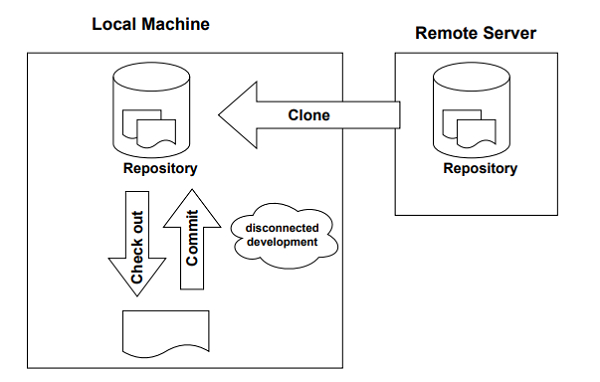 对于分布式版本控制系统,每个协作者都将在本地机器上拥有完整的代码库,包括完整的修订历史记录和提交信息。协作者可以在本地推送他的代码版本或新的更改集。这有助于避免由于中央版本控制服务器崩溃而导致的故障。一旦功能或一组更改集准备就绪,协作者就可以一次性将所有这些更改推送到中央服务器。换句话说,与集中式版本控制系统不同,无需在线即可更改修订版或向工作添加更改。此外,协作者可以选择与特定人员共享他的代码以获得反馈,然后再最终确定并将其代码提供给整个团队。