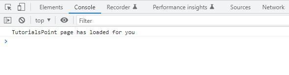 在这个例子中,让我们了解一下指示网页 DOM 加载完成的消息。它显示在控制台日志窗口中,如下面的结果所示。