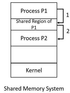 如果进程想要启动通信并且有一些数据要共享,则在其地址空间中建立共享内存区域。
