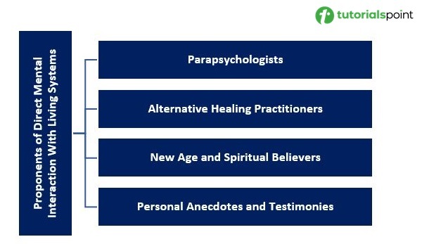 超心理学中的另一种方法是研究心灵感应或念力等现象,这些现象可能涉及与活体系统的直接心灵互动。心灵感应是指一种思想在无需正常交流方法的情况下与另一种思想交流的所谓能力。相反,念力是指仅通过思维过程控制或移动物体或活体的所谓能力。