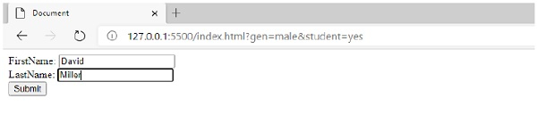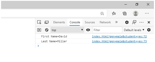 单击提交按钮后,您将在控制台上获得以下输出 -