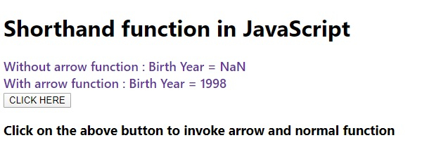 <h1>Shorthand function in JavaScript</h1>
