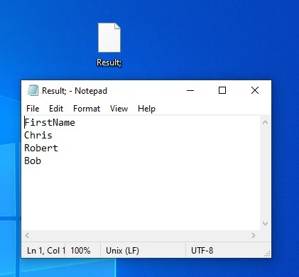 以下是位于桌面的“Result”的文件位置 −