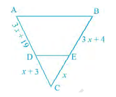 在下图中,求使 \( \mathrm{DE} \| \mathrm{AB} \) 的 \( x \) 值。