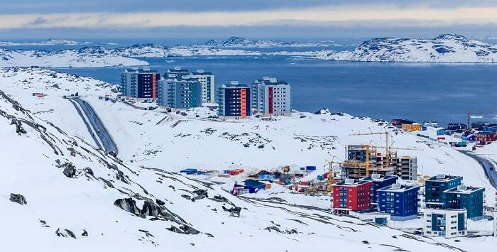 格陵兰的地理特征以其广阔的冰盖、崎岖的海岸线、多样化的野生动物和丰富的矿产资源为特点。这个丹麦领地比德克萨斯州大三倍多。格陵兰最近的邻国是加拿大的埃尔斯米尔岛,位于其北部26公里(或16英里)处。该国最近的欧洲邻国冰岛位于其东南约321公里(约200英里)处。由于格陵兰的三分之二位于北极圈内,所以该国全年气温寒冷。格陵兰人在冬季面临几乎完全黑暗,气温降至零下30°F(约零下34°C),而在夏季则有24小时的阳光,气温仅达到约40°F(约4°C)。