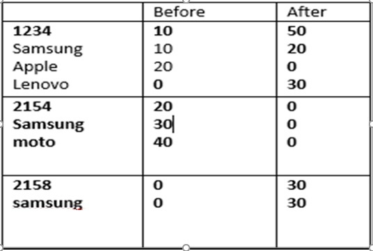 { name: 'samsung', before: '10', after: '20' },