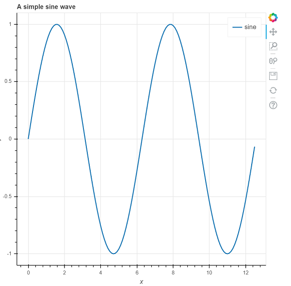 p = figure(title = "A simple sine wave ", x_axis_label = 'x', y_axis_label = 'y')