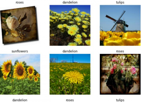 要继续在花卉数据集上训练模型,可以使用“fit”方法。在此方法中,还会指定 epoch 数(用于构建模型的数据训练次数)。一些示例图像也会显示在控制台上。