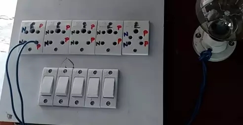 取一个带两个导线的灯泡支架,即用于灯泡的正负极。现在将一根导线插入相线,另一根插入零线。灯泡亮起,表示电源已接通。