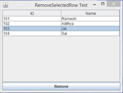 data = new Object[][] {{"101", "Ramesh"}, {"102", "Adithya"}, {"103", "Jai"}, {"104", "Sai"}};