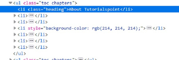child.findElement(By.xpath("parent::*"));让我们识别下面 HTML 代码中子元素 li 的父级的标签名: