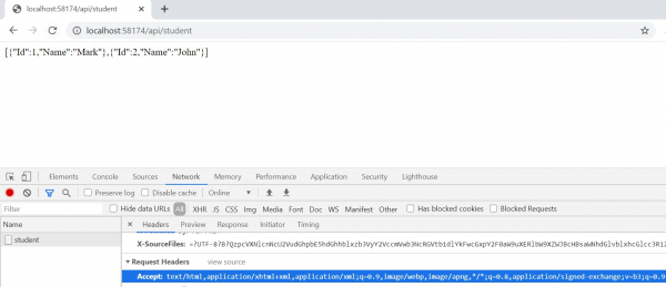 当浏览器向我们的 StudentController 发出请求时,响应将采用 XML 格式。这是因为浏览器默认发送 text/html 作为 Accept 标头。