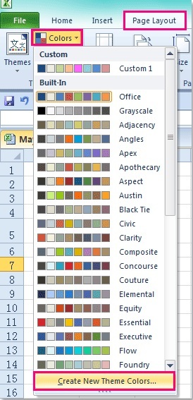 单击功能区中的“页面布局”选项卡,然后单击“颜色”>“创建新的主题颜色”。