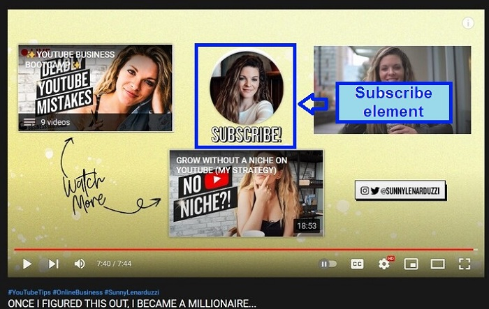 每个结束屏幕上的订阅按钮都会提醒用户订阅您的频道,从而实现让更多人注册您的内容的目标。当您为结束屏幕选择元素时,YouTube 会自动添加此按钮。