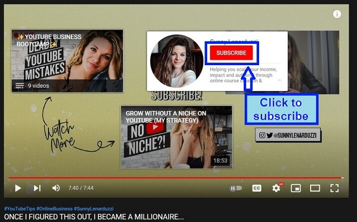 需要在正在播放的视频结束前 15-20 秒添加结束屏幕,以使观看者停留在该频道上。通过提示观看者点击显示的新视频链接,这是一个让他们保持参与度的平滑过渡。