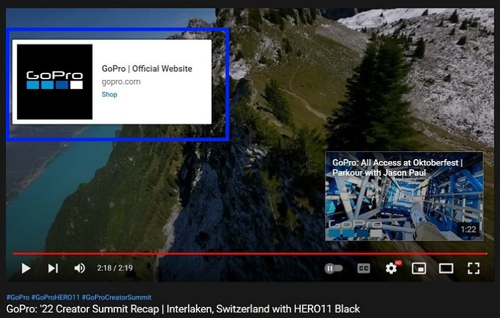 例如,在这个视频中,GoPro 为其观看者添加了一个链接,让他们去购买最新的产品,他们为捆绑包提供了 10% 的折扣。点击链接。