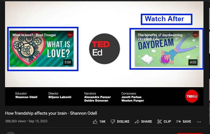 当您的自定义创建 YouTube 结束屏幕时,向其中添加标签,尤其是在它们是系列的一部分时,并告诉您的观众他们可以观看上一集和下一集视频。这些术语有助于人们理解该元素是可点击的,这鼓励他们继续观看您的频道。从而增加您频道的观看时长。