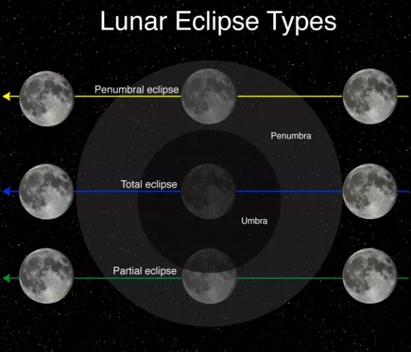 有三种类型的月食。