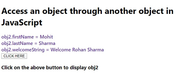以下是通过另一个对象在 JavaScript 中访问一个对象的代码 −