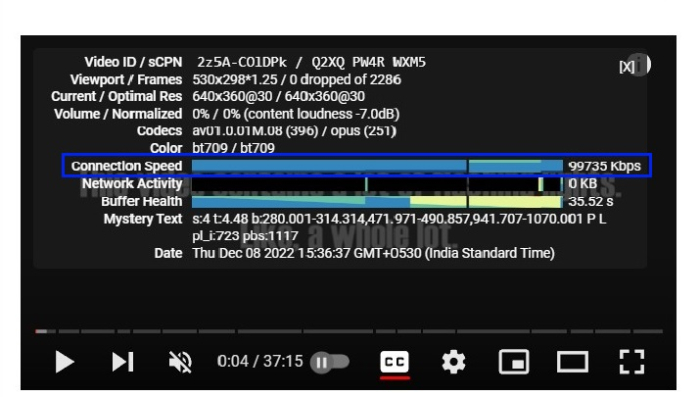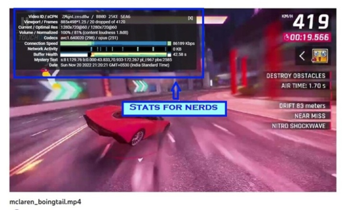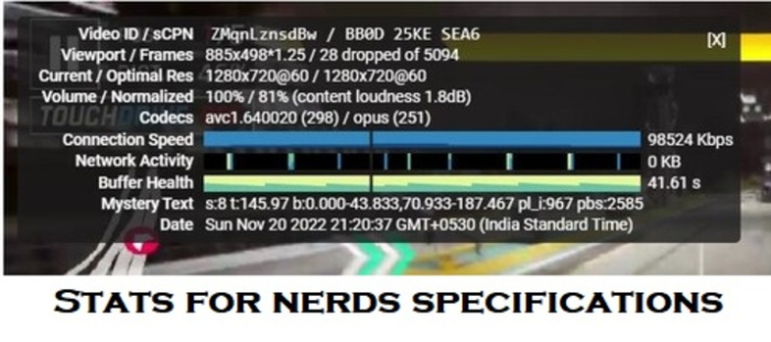 极客统计信息显示以下规范的数据。YouTube 应用中部分规范有所不同。它还会显示设备名称、预读和丢帧信息。以下是每个项目的详细解释。1. 如何激活和使用 YouTube“极客统计信息”功能