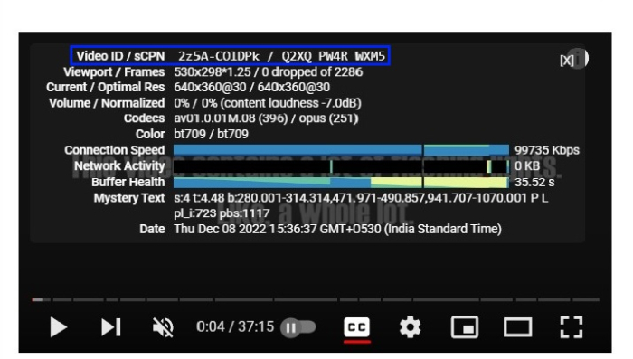 此字段的第一部分“视频 ID”不言自明。此字母数字 ID 号与视频相连接,可用于通过 YouTube 的 API 访问它。字段 sCPN 的第二部分是一个唯一的字符串,开发者可以使用它来识别您对视频的特定观看。