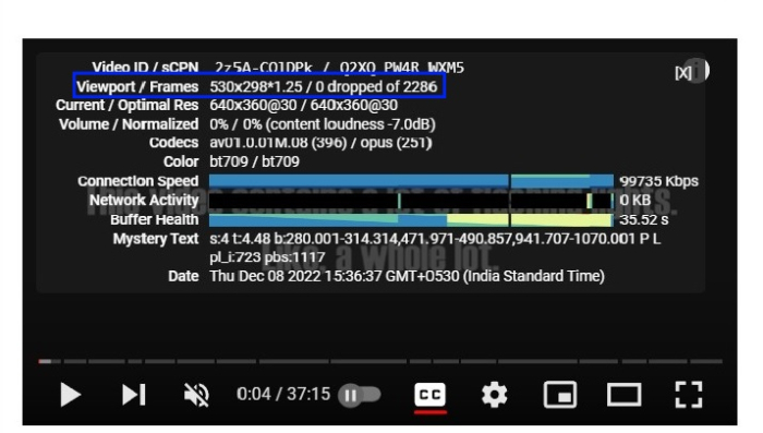 视频播放器的分辨率(而非视频的分辨率)以及您正在观看的当前帧。与视频分辨率不同,视口分辨率是您实际观看的分辨率,而不是视频的分辨率。