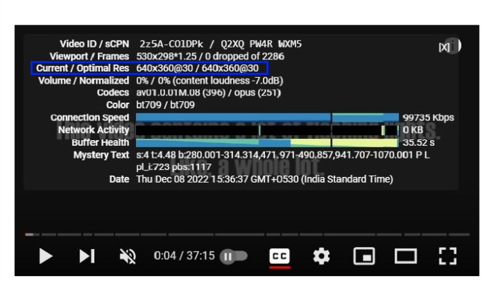 视频屏幕上已打开“极客统计信息”。