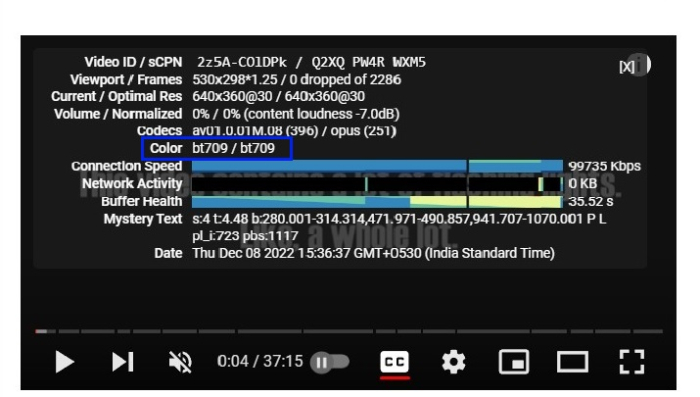 这显示了您正在观看的内容的当前颜色范围。此信息可能有助于确认您的 Xbox Series X|S 或 Xbox One 游戏机最终能否在 YouTube 上播放 HDR 视频。