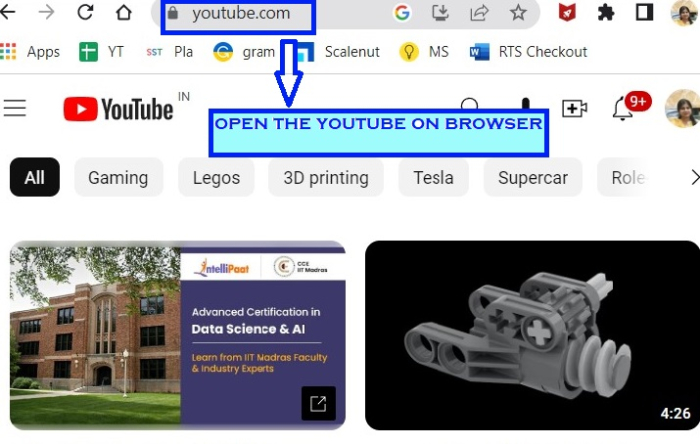 在浏览器中打开 Youtube.com。