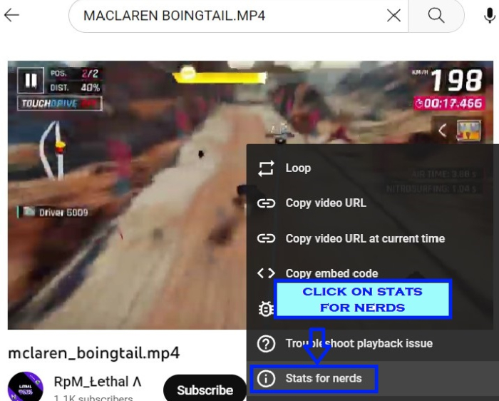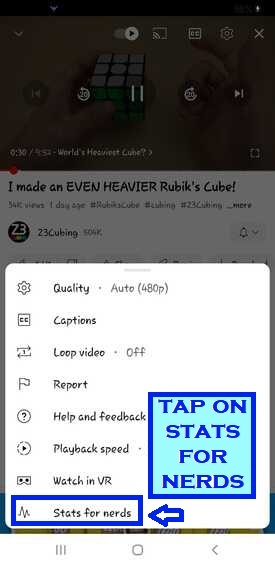 在视频上查看“极客统计信息”的步骤。