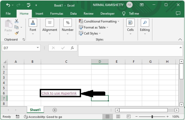 让我们考虑一个 Excel 表格,其中我们有一个类似于下图的超链接。
