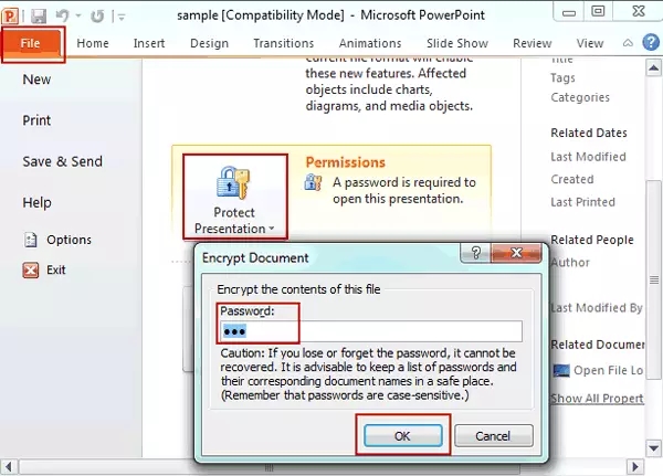 由于它已经是一个加密的文档,请使用密码打开演示文稿。