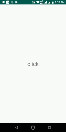 <?xml version = "1.0" encoding = "utf-8"?> <LinearLayout xmlns:android = "http://schemas.android.com/apk/res/android" android:layout_width = "match_parent" android:gravity = "center" android:layout_height = "match_parent"> <TextView android:id = "@+id/click" android:layout_width = "wrap_content" android:textSize = "30sp" android:layout_height = "wrap_content" android:text = "Click"/> </LinearLayout>