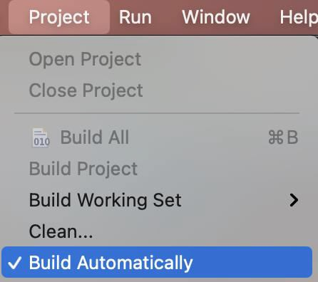 步骤 3− 单击“项目”菜单,然后选择“自动构建”选项。