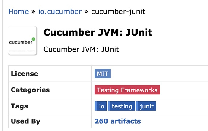 https://mvnrepository.com/artifact/io.cucumber/cucumber-junit