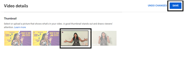 - 步骤 6 − YouTube 会自动生成三个自动生成的缩略图,您可以选择其中一个并点击保存按钮(如下所示)。